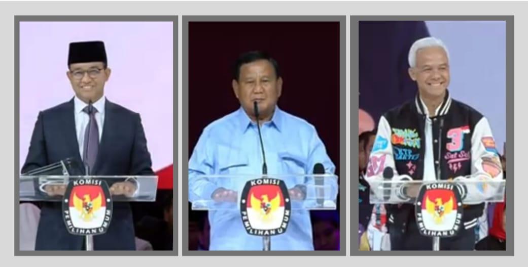 METROJATENG.COM, JAKARTA – Pada segmen terakhir debat capres kelima, masing-masing capres memberikan closing statemen. Dari capres Anies Baswedan yang lebih banyak berbicara tentang negara yang welas asih dan semangat perubahan, Prabowo Subianto yang banyak mengucapkan terima kasih dan semangat kekeluargaan serta Ganjar Prabowo yang lebih banyak mengungkap kriteria pemimpin yang harus dipilih rakyat.