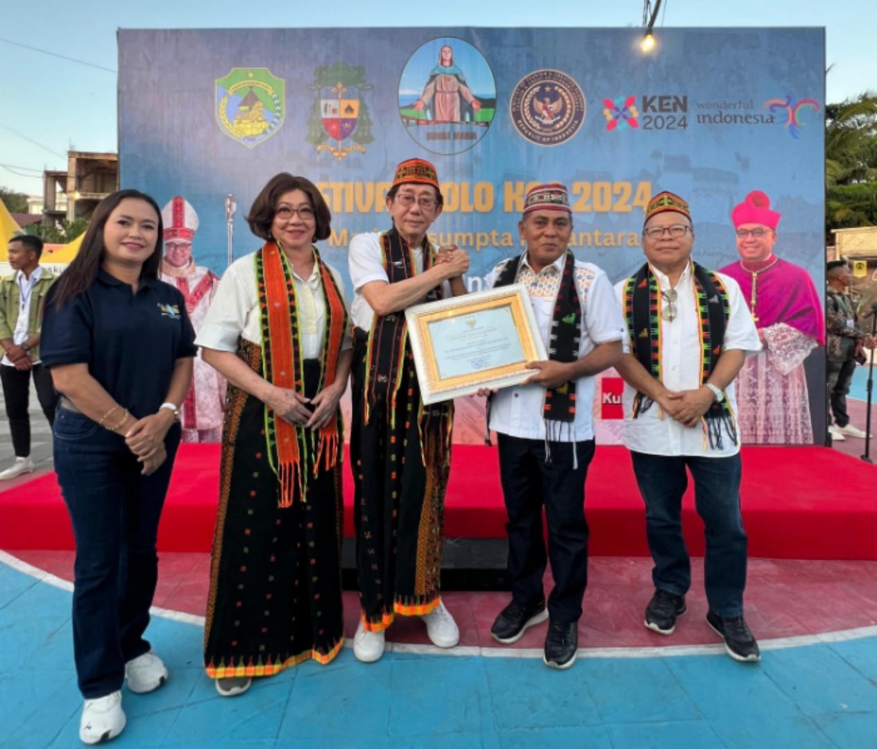 Penghargaan diserahkan langsung oleh Bupati Manggarai Barat, Edistasius Endi kepada Direktur Sido Muncul, Irwan Hidayat pada saat pembukaan Festival Golokoe Maria Assumpta Nusantara Labuan Bajo 2024 di Labuan Bajo Waterfront Marina Area, Labuan Bajo, Kecamatan Komodo, Kabupaten Manggarai Barat, Nusa Tenggara Timur, Sabtu, (10/8/2024) yang dihadiri oleh Uskup Labuan Bajo Mgr Maximus Regus Pr.