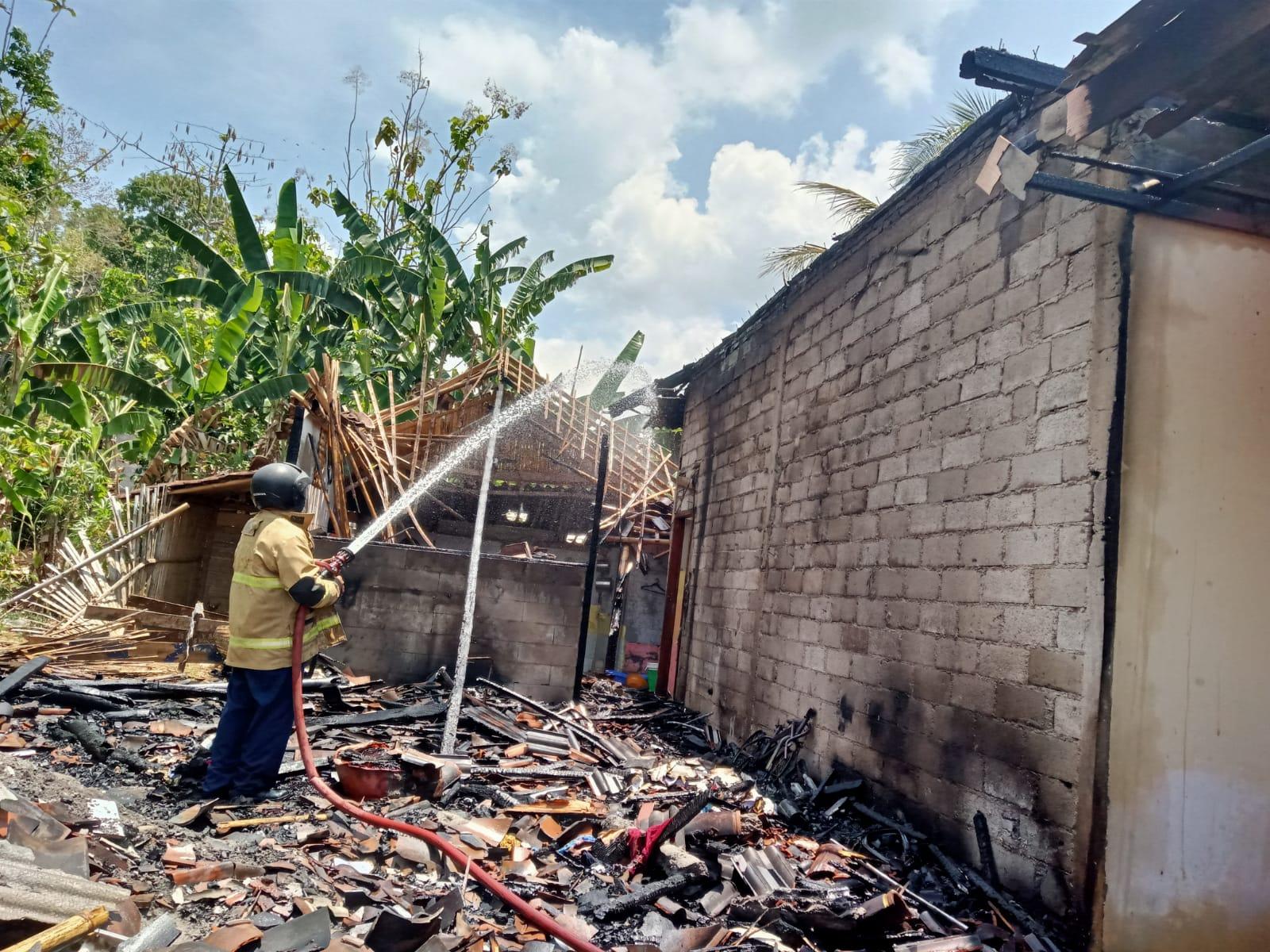 ‘’Saat kejadian rumah dalam kondisi kosong sudah dua hari terakhir,  Diduga kebakaran karena adanya konsleting jaringan listrik dari  mesin cuci di dapur. Saat ditinggal, colokan ke mesin cuci tidak dicabut’’, jelasnya.