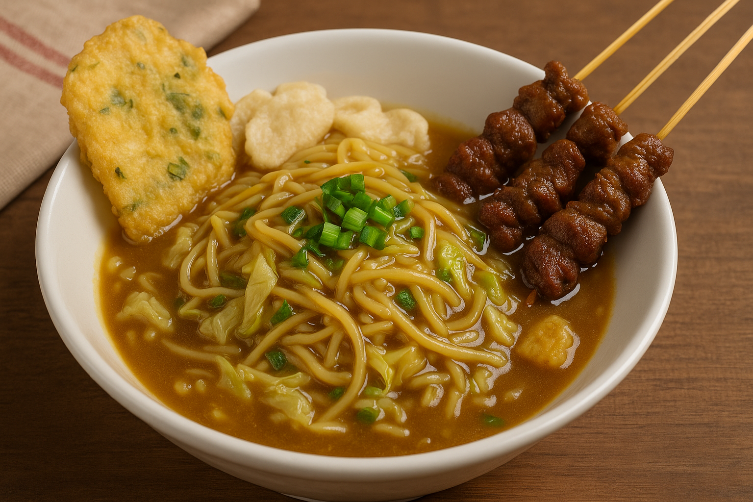 Mie ongklok adalah hidangan berbahan dasar mie kuning yang direbus bersama kol dan daun kucai, lalu disiram dengan kuah kental berwarna cokelat keemasan. Kuah ini menjadi pembeda utama dari mie-mie lainnya, karena dibuat dari kaldu ebi dan tepung kanji, dengan tambahan rempah-rempah seperti bawang putih, lada, dan gula jawa. Proses “di-ongklok” atau direbus menggunakan saringan bambu khas yang menjadi asal-usul nama makanan ini—memberi sensasi tersendiri saat menyaksikan penyajiannya.