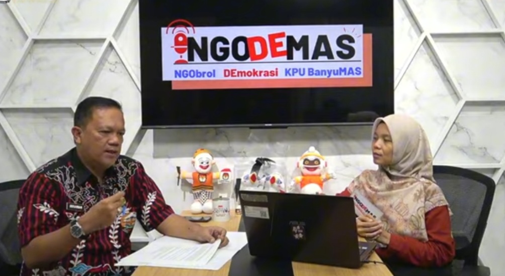Caption Foto : Kepala Dindukcapil Kabupaten Banyumas, Drs. Hirawan Danan Putra M.Si saat podcast di KPU Banyumas. (Foto : Dok. KPU Banyumas).